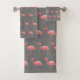 GREY PINK FLAMINGO PATTERN BATHROOM TOWEL SET