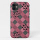 Grey pink geometric chequered pattern with flowers Case-Mate iPhone case