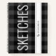 Grey and black buffalo plaid check pattern personalised sketchbook notebook for drawing and art, titled "Sketches by... and your name" printed on the cover in modern large oversized bold letters. Grey background colour can be changed to anything you like using the advanced editor.