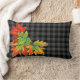 Grey Plaid with Fall Maple Leaves Lumbar Cushion