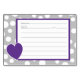 Fun polka-dot pattern in grey & dark purple with heart printed recipe cards to compliment our binder. Change background colour from grey to any colour.