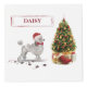 A joyful grey poodle looks with anticipation at the decorated Christmas tree. Filled with lights and ornaments with presents under the tree, excitement awaits! Cute gift to send on Christmas wishing happy holidays and a happy new year!