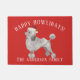 Adorable Christmas doormat featuring a Grey Poodle wearing a santa hat on a festive red background.
