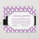 Bridal Shower invitations with a modern and trendy pattern with assorted white polka dots over purple, and a purple and grey typography design.