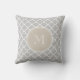 Grey Quatrefoil Pattern, Beige Monogram Cushion