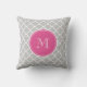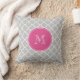 Grey Quatrefoil Pattern, Hot Pink Monogram Cushion