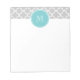 Grey Quatrefoil Pattern, Teal Monogram Notepad