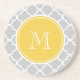 Grey Quatrefoil Pattern, Yellow Monogram Coaster
