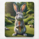 A cute winking rabbit is sitting in a lush garden, happily holding a carrot