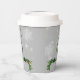 Sip your favourite Christmas time beverages with a festive set of Grey Reindeer Paper Cups. Paper cup design features a festive reindeer wearing a Christmas wreath adorned with holly berries and falling snowflakes and a holiday greeting box decorated with holiday garland. Additional gift and holiday items available with this design as well.