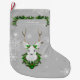 Add a festive touch to your fireplace mantle this holiday season with a Grey Reindeer Stocking. Stocking design features a festive reindeer wearing a Christmas wreath adorned with holly berries and falling snowflakes and a box decorated with holiday garland with a space you can add your name for personalisation. Additional gift and holiday items available with this design as well.