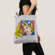 This is a colourful and fun tote bag with a bit of sarcastic humour. 'Zombies Eat Brains. You'll be okay." This Pop-art gal looks sweet and wholesome, but she is has something saucy to say! I could see a teen wearing this tote bag at school and getting a few laughs. Or a cool mum walking the mall. So fun!