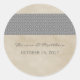 Elegant and chic Rustic Damask Wedding Stickers featuring a vintage textured paper look background and a flourish damask pattern border in grey. Easy to customise, simply add your wedding details. Click "Customise It" to find more personalisation options.