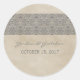 Simple and elegant Rustic Lace Wedding Stickers featuring a vintage textured paper look background and a sweet and dainty lace pattern border in grey. Easy to customise, simply add your wedding details. Click "Customise It" to find more personalisation options.