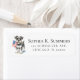 A refined address label featuring a medium grey schnauzer holding an American flag, combining timeless elegance with patriotic charm, perfect for dog lovers who appreciate classic style. Perfect for 4th of July celebration invitations.