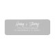 Grey return address labels with modern script. Personalise with your information and choice of colours. These are definitely our fan favourite and we don't blame them. Stylish and chic with a simple modern look.