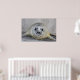 This image shows a grey seal pup lying on cement.  At birth, pups are about 3-3.5 feet long from nose to tail and weigh about 33 pounds. They have a cream-coloured, natal lanugo coat that molts at 2-3 weeks old. Pups feed for about five minutes every five hours and gain weight rapidly on the high-fat milk. Pups gain about 5 pounds per day from their mother's rich milk but gain little, if any, length. | "Smithsonian" and the Smithsonian logo are registered trademarks owned by Smithsonian Instituti