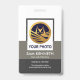 A simple white and grey shades block column design. A dark grey frame encapsulates the photo placard. This placard can have photos with a size of 1,000 pix x 1,200 pix. The grey cover helps with photos that have a white background. Just below the photo lies your prestigious name and job title. Southwards to the base of the badge, are the ID Number and business name.