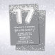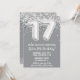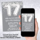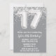 Grey and silver 17th birthday party invitation 17 birthday party invitation for a boy or girl with modern script writing and fun foil balloons.