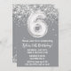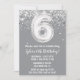 Grey Silver 6th Birthday Party Invitation