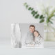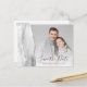 This elegant horizontal save the date postcard features a grey and white watercolor agate border trimmed with faux silver glitter. Easily replace the sample image with your own photo. The customisable text combines charcoal grey handwriting script and copperplate font; a white gradient filter helps make the text pop. Add your return address and additional details to the reverse side.