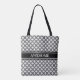Chic grey and silver stylish diamond and hexagon pattern with black belt Tote Bag. Text can be personalised. Casual yet elegant women Tote Bags!
