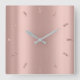 Grey Silver Rose Blush Pink Peach Minimal Glitter Square Wall Clock