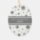 Baby's 1st christmas ornament customisable with your own baby photos in elegant dark charcoal grey and white festive snowflakes pattern. A memorable gift for any new mum this holiday season.
