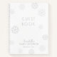 This cute winter gender-neutral baby shower guest book features a white background with snowflakes in light grey. The reverse side features a light grey background with white snow patterns. Perfect for winter showers. Personalise it for your needs. You can find matching products at my store.