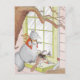 A grey squirrel and bird peer in through the window of a house in a vintage illustration by Harrison Cady for a 1920 children's book.