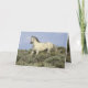 This battle-scarred wild grey stallion comes proudly down the hill to investigate in the Adobe Town Herd Area of Wyoming. There is an additional image of the stallion inside the card. Both images are by Carol Walker.