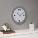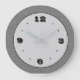 An atmospheric clock in stone grey with a light grey centre. Complementing this design is a trendy numeral font in black and grey. Available in round and square shapes.