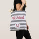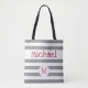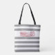 Grey Stripe Firetruck Baby Trendy Initial Monogram Tote Bag