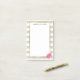 Grey Stripe & Pink Peony Personalised Post-it Notes