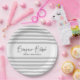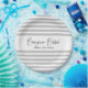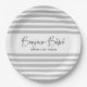Designed to match the colour of our nursery collection. The design features simple yet modern light grey and white stripes (great for gender-neutral), a header that reads "Bonjour Bebe", meaning hello baby, and one line of text for personalisation.