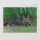 Here is a postcard that was created from one of my original photographs of feral cat lying in my irises.  We call this grey tabby "Fattylou"  I discovered this cat while hiking off trail in the woods by my home.  Then started feeding him and eventually he came to my yard.  I will be trapping this cat for TNR.