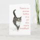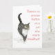 A humourous notecard with a grey tabby cat wanting its breakfast from a watercolour painting by Judy Adamson. Purrfect for a cat-lover!