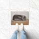 Grey tabby cat sleeping on cardboard box door mat. Beautiful cosy cat photograph digitally painted. For cat lovers. Cosy home decor item.