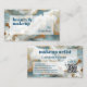 If you are a beauty consultant, an aesthetician, a hair and nail stylist, or a make-up artist, you need a business card that reflects your passion and expertise. This stunning business card features a teal, grey, blue, white, and gold marble wave art pattern that will catch the eye of your potential clients. The marbled design symbolises your creativity, elegance, and sophistication, while the golden accents add a touch of luxury and glamour. Click on 'Personalise' to find the template ready to be customised with your unique business name, profession, and contact information, text, and QR code of your choice. This particular pretty and unique design was made for those who like sophisticated classic geometric abstract designs. Order yours today and impress your clients with your unique style and professionalism.
