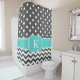 Grey Teal Polka Dots Chevron Monogram Initials Shower Curtain