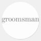 Grey text Groomsman design T-shirts, mugs, mousepads, tote bags, cards, buttons, and more to match every member of the wedding party and family members. The guy's design is simple grey text, the girls has small red hearts.