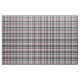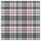 Grey textured tartan plaid with thin red and blue stripes.
