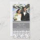 Wedding thank you photo cards in elegant and modern grey and white with delicate floral damask vintage pattern. A perfect way to thank friends and family for wedding gifts and to share your wedding photos. Available in matching postage, and many other products for your wedding.