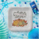 Serve your holiday feast in seasonal style with this elegant Grey Thanksgiving Pumpkins and Squash Paper Plate, featuring a beautifully arranged cluster of Thanksgiving pumpkins, pumpkins and squash, and graceful autumn botanicals. A timeless vintage stripe background and flowing elegant banner showcase the warm message “Happy Thanksgiving” in crisp modern typography, while colourful fall leaves add the perfect finishing touch.
