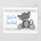 Grey Tiger Kitten Blue Baby Shower Invitation Postcard