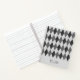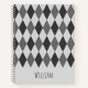 A notebook designed with an argyle pattern in grey tones. Customise it with your own text among other options.