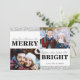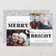 TeeLofts' 2-photo Christmas pattern card design features Merry & Bright bold modern typography and a light grey ampersand overlaid over the design elements. The design is accented with holiday greenery line art in grey and white which is repeated on the back. It's easy to add your family names and two photos. The reverse side is dated with the year. #Christmas #Holidays #ChristmasCards