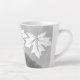 Grey watercolor and white maple leaves winter latte mug. A lovely design that includes beautiful maple leaves in white on grey watercolor wash.
