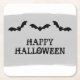 Trendy and fun Watercolor Bats Halloween Paper Coasters with a light grey watercolor look background and three whimsical little bats. These simple and modern coasters can be easily customised with your own Halloween greeting or other spooky text. Find more customisation options by clicking Customise It.