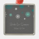 Winter Wedding custom name and date ornament in elegant and modern dark charcoal grey, turquoise aqua teal blue and white festive snowflakes pattern. A stylish christmas gift for family and friends or to decorate your christmas tree or home for the holidays. The perfect way to remember your winter wedding day.